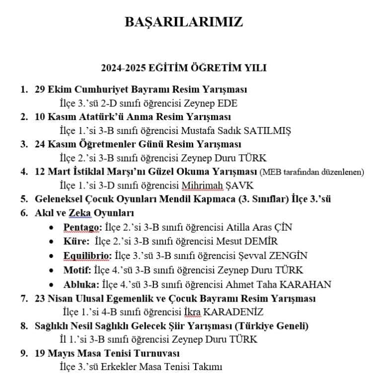 2024-2025 EĞİTİM ÖĞRETİM YILI